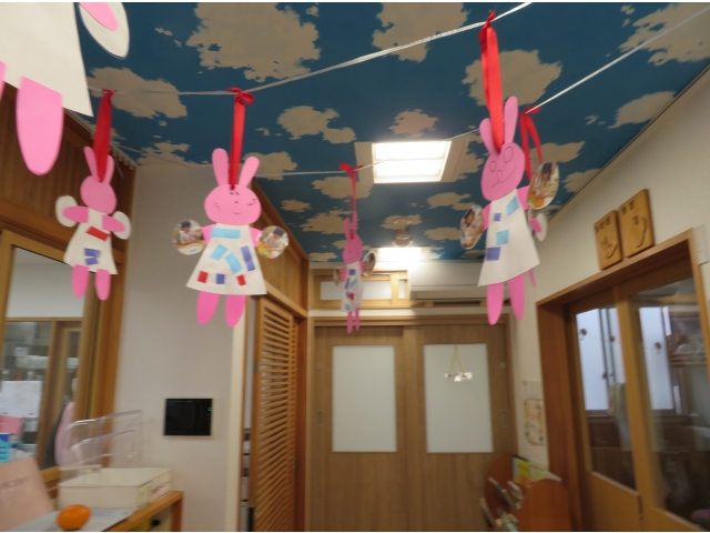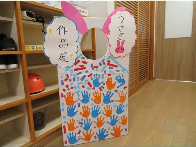 看板はうさぎ組が作成してくれました☆顔出しパネルでみんな記念撮影を楽しんでいました✨