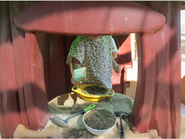 砂遊びも大好きで、「ごはん!」「アイスつくるー!🍧」と保育士とやりとりしながら楽しんでいますよ( *´艸`)