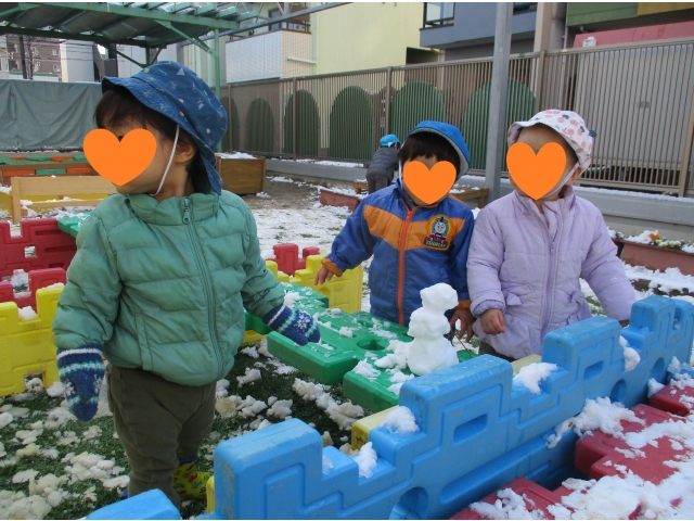 1月に入り寒い日が続いています。それでも子ども達は、寒さはものともせず、元気に遊んでいます。友達と同じ事をしてみたり、自分の興味のある事に没頭してみたり…。