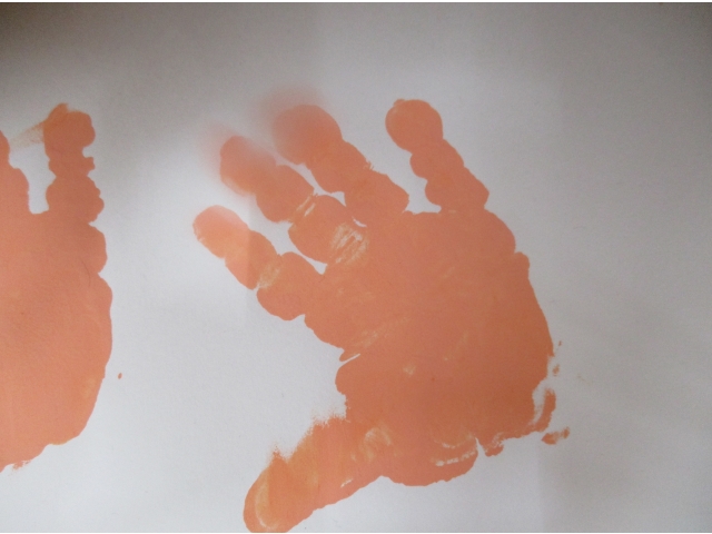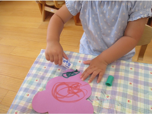 ひよこぐみ(0歳児)は絵の具で手形