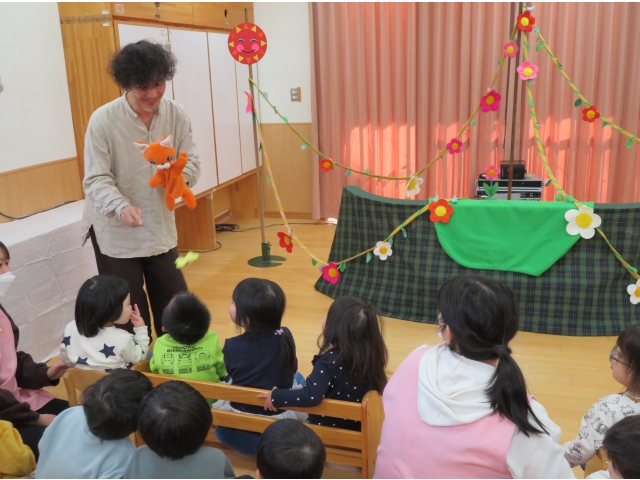 お話しが進むにつれて子どもたちの反応も良くなってきてみーくんの面白い動きに笑ったり手拍子したり身体を揺らしたり楽しんでいました。