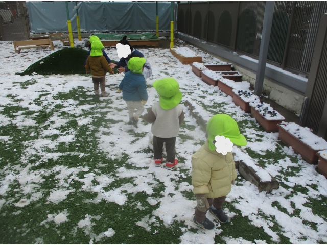 北風の強い日や、雪の日など、本格的な冬の到来を感じさせる日々が続いています。 ひよこ組では、体調を考慮しながら、時間を調節して、外遊びを楽しんでいます。 雪を踏んで、その感覚を味わったり、陽だまりの暖かさを感じたり…と、冬ならではの感覚も、経験しています!