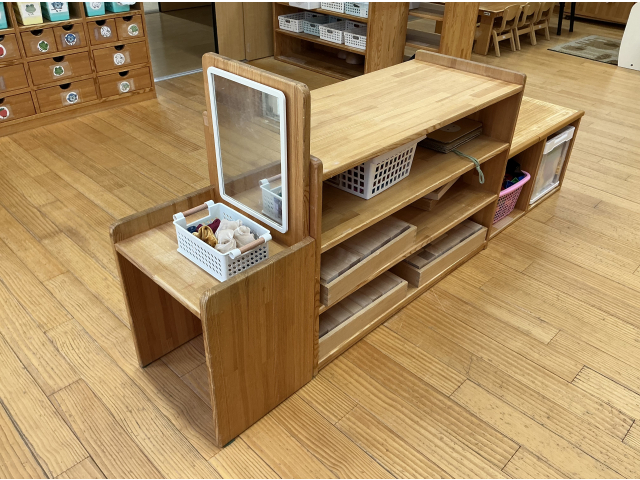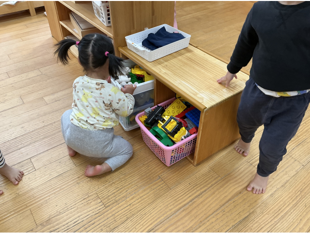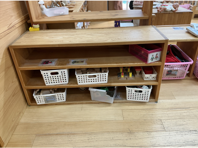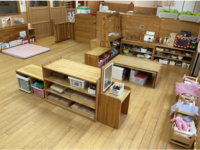 つみき保育園では、各クラス、子どもの発達や興味に合わせ、おもちゃを用意したり、遊びのコーナーを考えたりしながら室内環境を整えています。