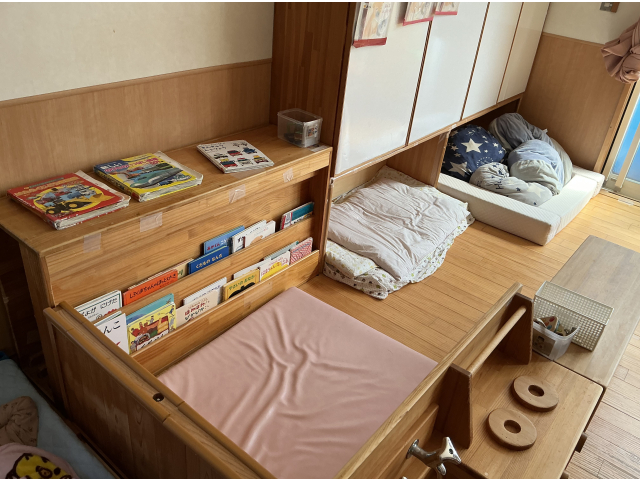 - 絵本コーナーとリラックスコーナー
