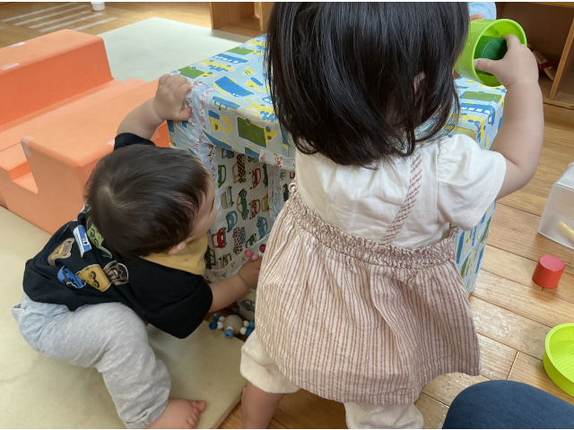 6月に入りました。毎日の気温差が大きく、体調を整えるために工夫が必要な日々です。そのような中でも、ひよこ組のお友だちは、自分の興味のあることに夢中になって、毎日を過ごしています。睡眠・食事をしっかりとって、これからの暑い毎日を乗り越えていきたいです。