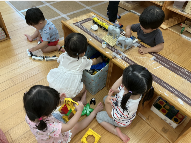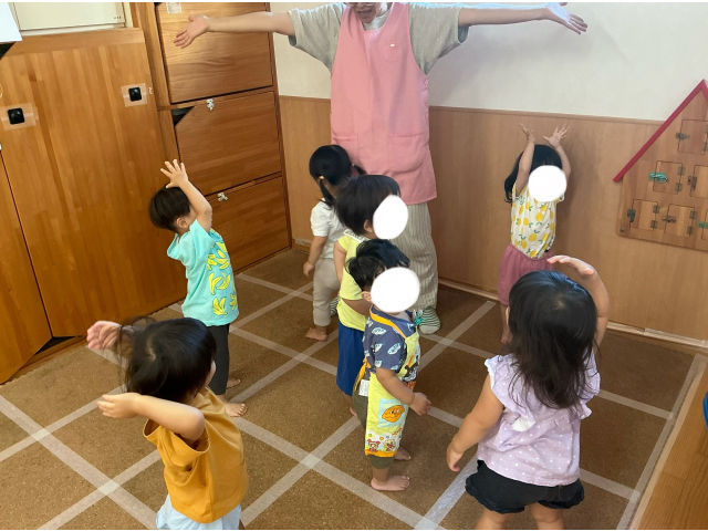8月になり、40℃近く暑い日が続いていますね。今月はりす組のクラスの様子を紹介していきたいと思います。