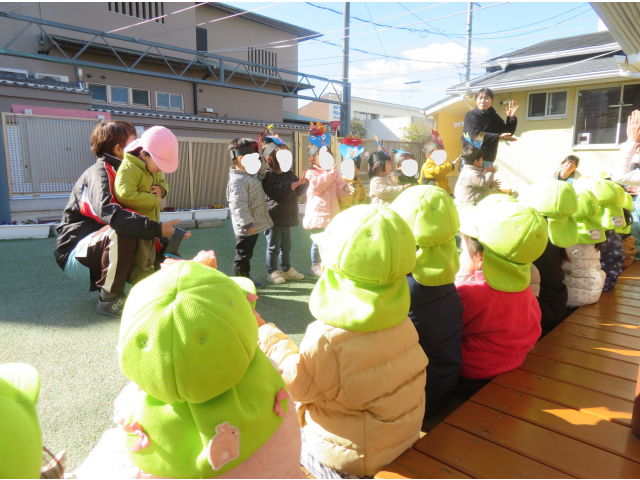 うさぎ組が前に出て、「豆まき」の歌をみんなで歌いました!