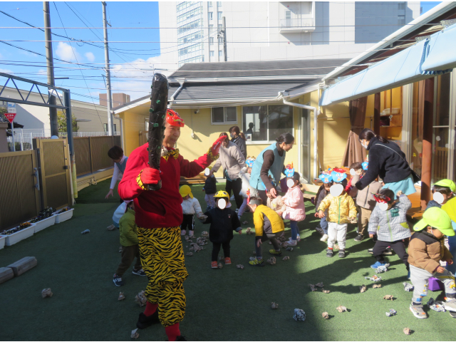 寒い日が続きますが、明日から立春ですね。そして2月3日の今日は節分ですね。今年もつみき保育園に鬼がやってきました!
