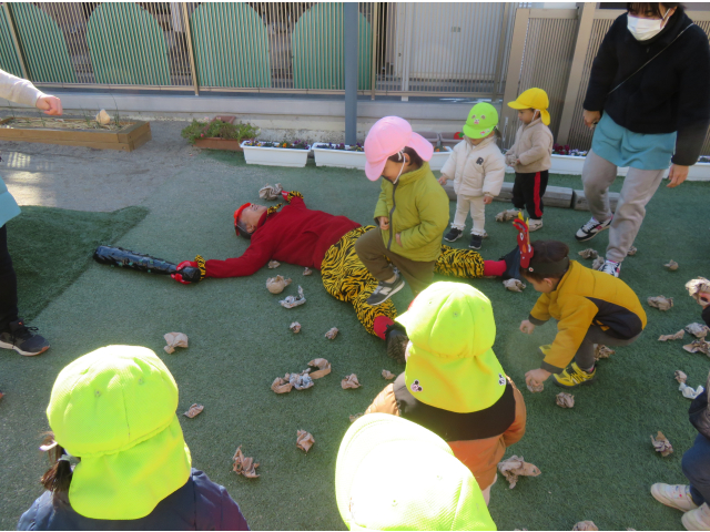 最後はみんなで記念写真を撮ってハイタッチをしました。優しい鬼さん!また来年もみんなで会おうね!