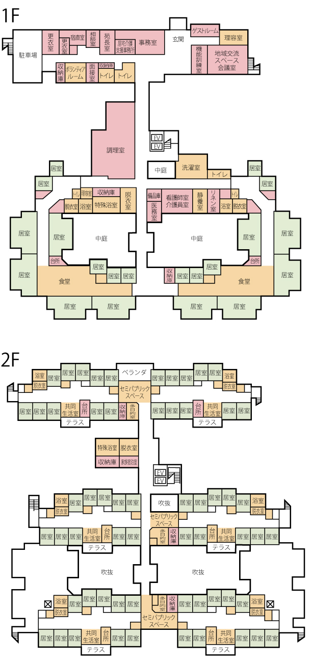 また、各施設内のお部屋は利用される方のプライバシーに配慮されたつくりになっており、安心して過ごしていただけます。