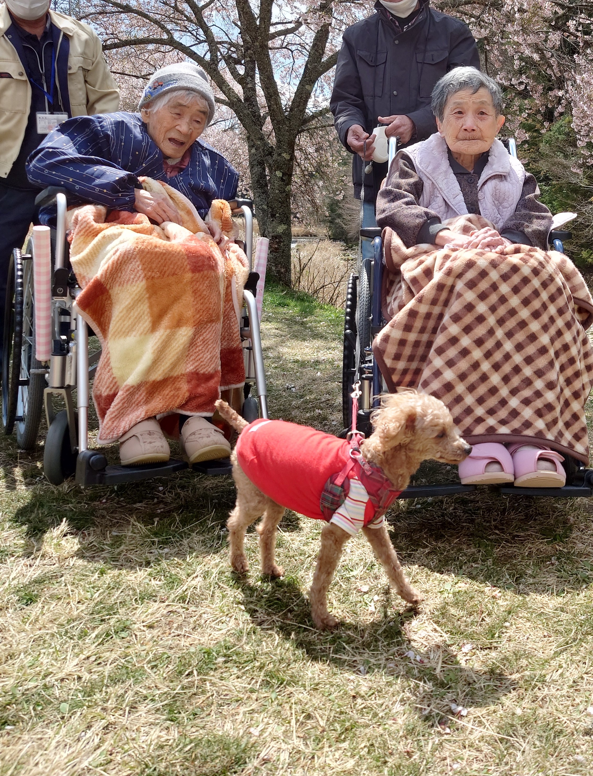 道の駅アグリステーションなぐらでお花見🌸 設楽町のなぐらエリアは標高が高いので4月中旬の今でも桜がきれいです! 途中で利用者様のご自宅に寄ったり かわいいワンちゃんに癒されたり 大きなピーナッツ五平餅を食べたり 楽しい時間を過ごしていただきました✨ (愛厚清嶺の風広報担当)