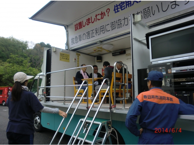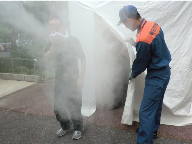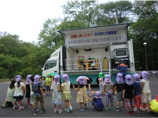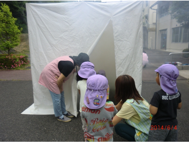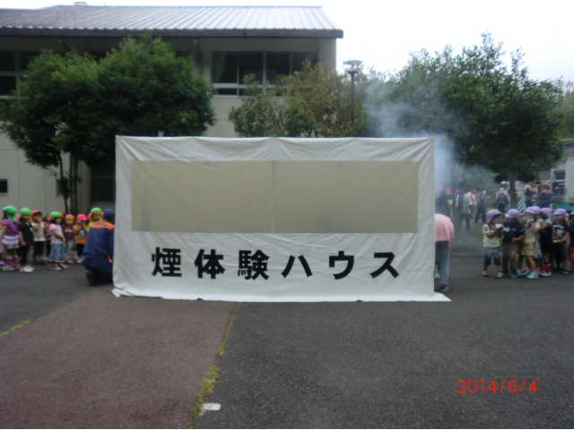 グラッキー(地震体験車)で地震体験をしたり、煙の中をしゃがんで進むスモーク体験をしました。