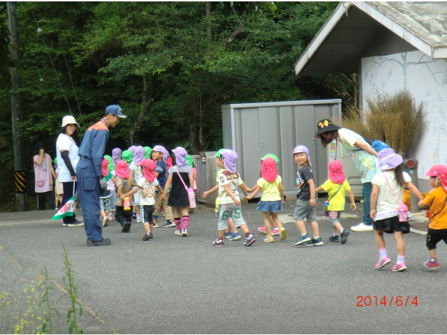 明知寮の近くにある坂下北保育園の園児さんにも参加していただき、大人数での訓練になりました!