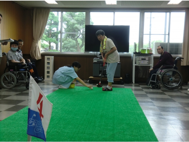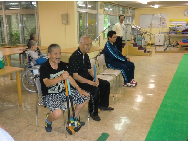今年度も7月1日に、はなのきの里でグラウンドゴルフ交流会を行いました(8分音符) しかしこの日は生憎の大雨・・・。そのため屋内でのプレーとなりました。 今回は明知寮の利用者さんの中に、見事準優勝に輝いた方がいました!おめでとう☆☆