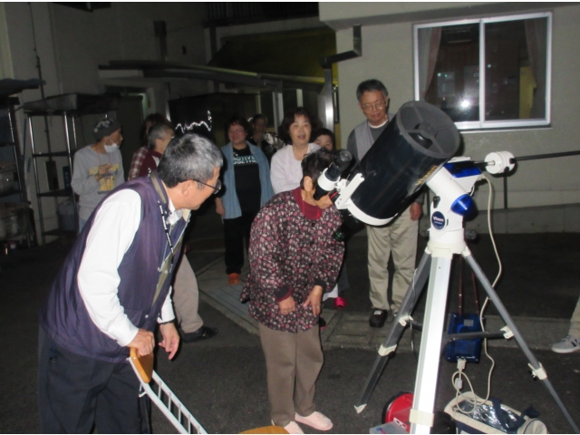 10月21日(水)、半月がのぼる秋空の中、お月見をしました。寮長さんが持ってきた望遠鏡でお月様のデコボコまで見えちゃいました! 今夜はオリオン座流星群がピークとのことです。見れたらいいな(8分音符)