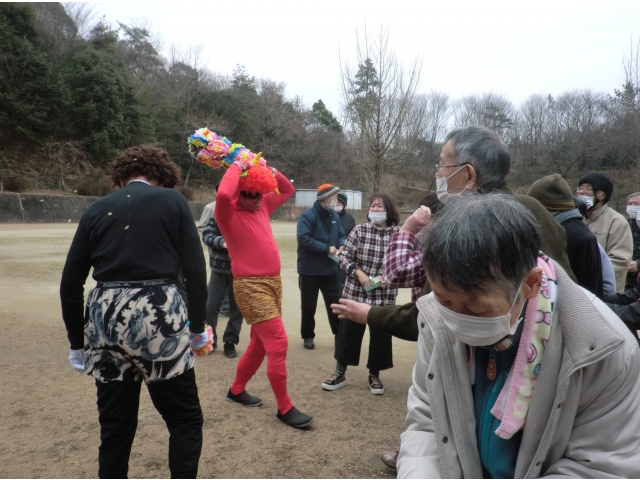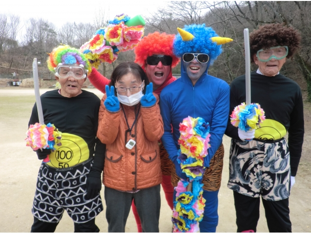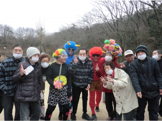 青空の元、予想はしていたものの突如、現れた鬼に利用者様は(*_*; 慌てて手に持っていた豆を鬼にめがけながら・・・「鬼は退散!福は~明知寮へ!」と (^^♪鬼も負けず劣らず花刀?を振り回すも(>_<) 利用者様から投げられる豆を避ける為、グラウンドを駆け回りヘトヘト・・・皆、疲れ切って最後は仲良く記念撮影(^^♪