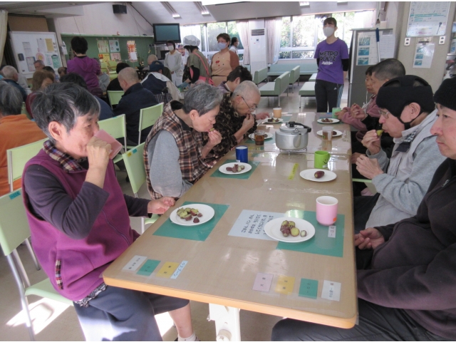 本日は、クラブ活動を実施。前半は、生け花等を行い後半に明知寮で収穫したサツマイモを使い『ふかし芋』を作り、みんなで食べました。形は小ぶりですが、美味しいお芋でした(^^)/