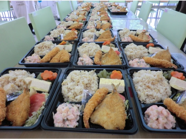 皆さんお楽しみの昼食は、明知寮名物の自家製弁当!