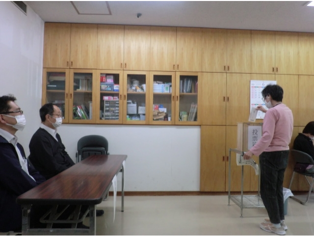今回は3名の立候補がありました。前日に届いた選挙公報に記載された各候補者の公約を隅々まで読み決めた意中の名前を真剣な表情で投票用紙に記入して一票を投じます。