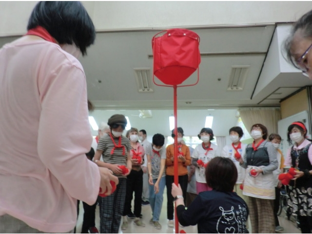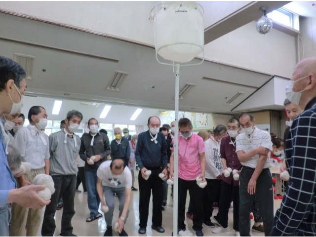 参加競技は玉入れと、パン取り競争の2種目です。利用者様の全員が参加されました。