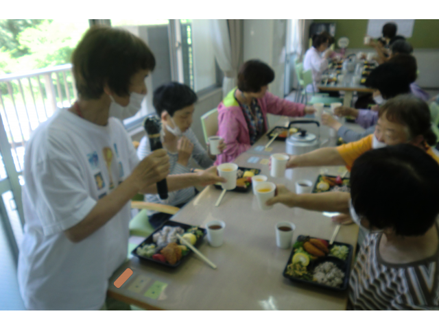 寮長よりプレゼントをお渡しし、歌でお祝い♪そして乾杯!皆さん、おいしそうに召し上がっていました。6月生まれの皆さん、おめでとうございます!!