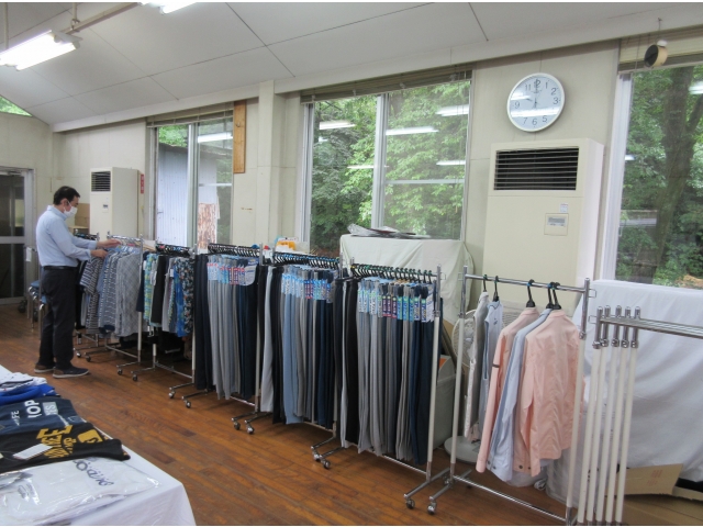 梅雨の晴れ間の青空に心和むこの季節、明知寮では有限会社丸屋様による衣類販売が行われました。