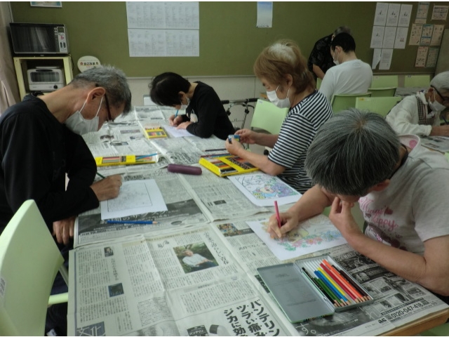 月曜日は他にも文化クラブがあり、選択された方は、屋内で創作活動に勤しんでいます。
