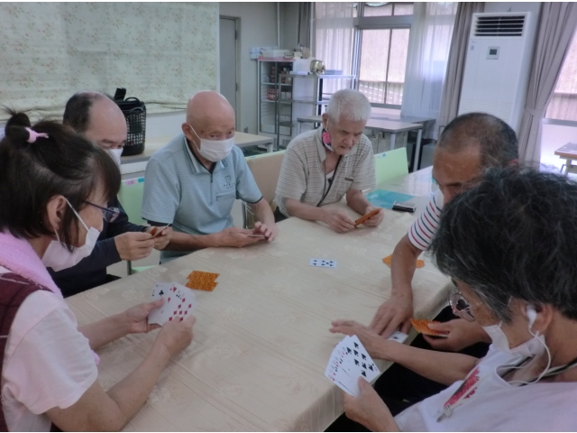 また、金曜日には全体クラブとして、上記の卓球や創作活動の他、カラオケ、カードゲームを利用者様が選択して楽しまれています。