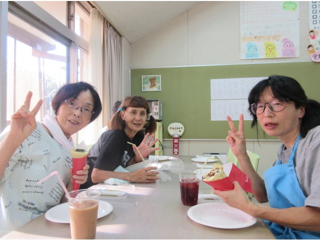 午後から全員におやつとして移動販売(クレープショップ サニーズ)のクレープと、ジュースを提供しました。