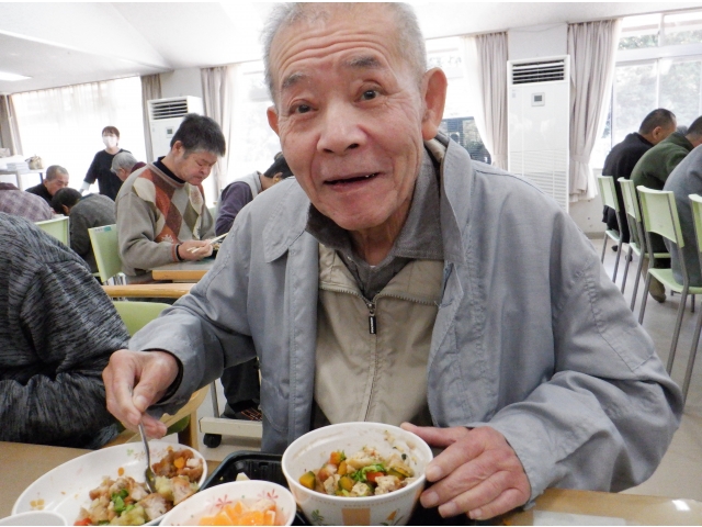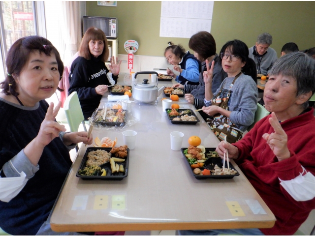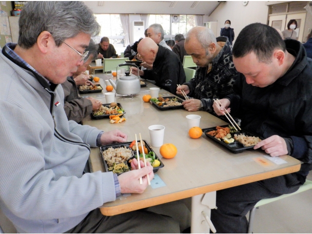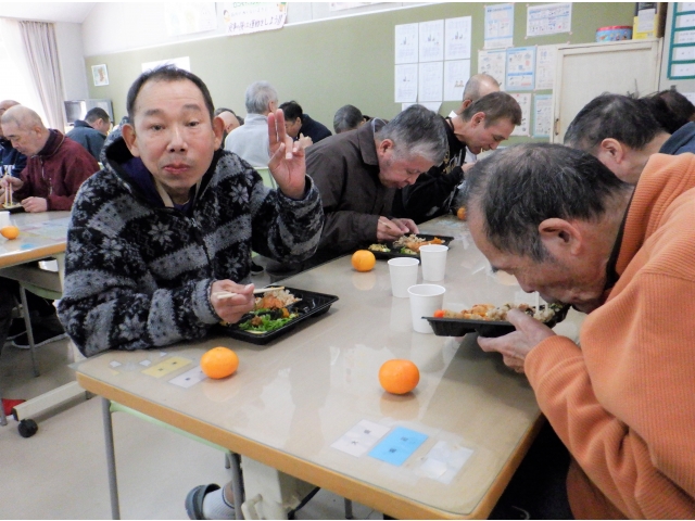 厨房で手作りし、職員が心を込めて詰めた唐揚げ弁当はとってもボリューミー&ジューシーで大好評でした。