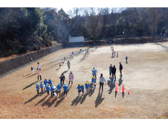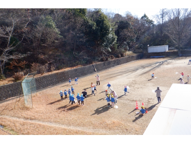 園庭よりも広いグランドを寒さをもろともせずに、凧を揚げようと一生懸命走っていました。