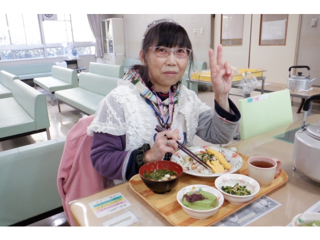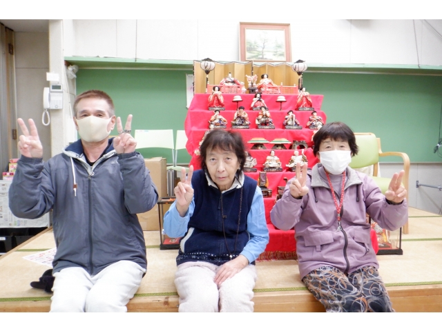 暖かい日が続き、ようやく春を感じる時期になりましたが、ひな人形は1ヶ月ほど前から飾ってあり、利用者様はこの日を待ち遠しく感じていました。