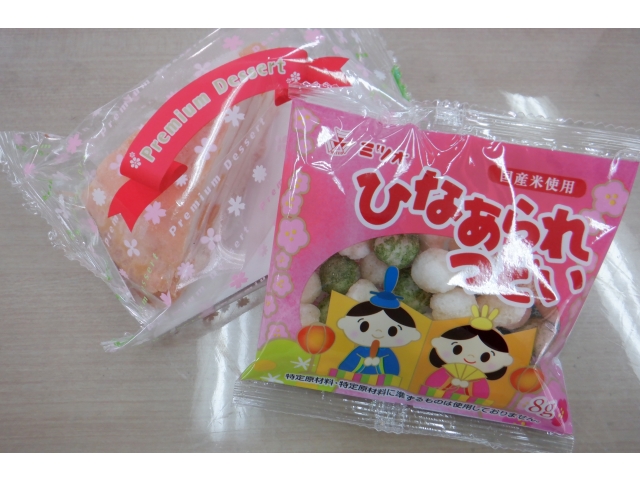 それから、午後のおやつにはひなあられ、桃のミルクレープを提供しました。