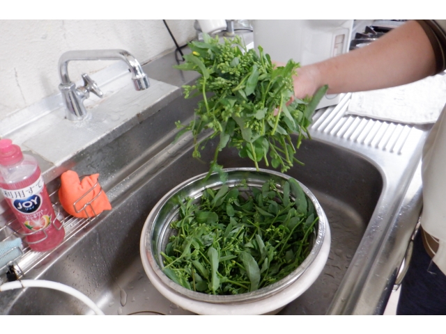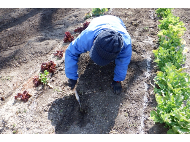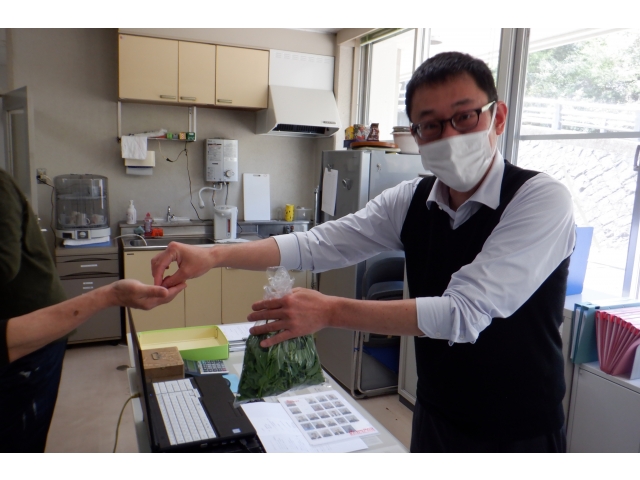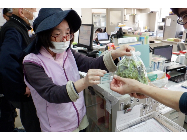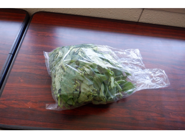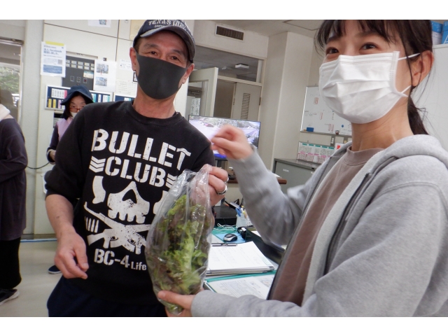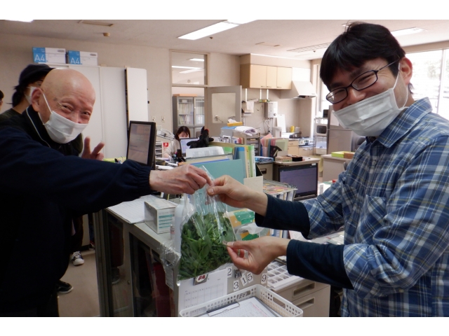 今回収穫した菜花、サニーレタス、二十日大根、スナップエンドウは職員が購入しました。