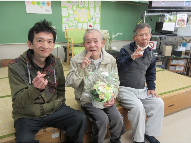 3月31日、老人ホームに移行される利用者様と、転退職する3名の職員のお別れ会を行いました。