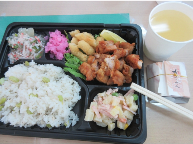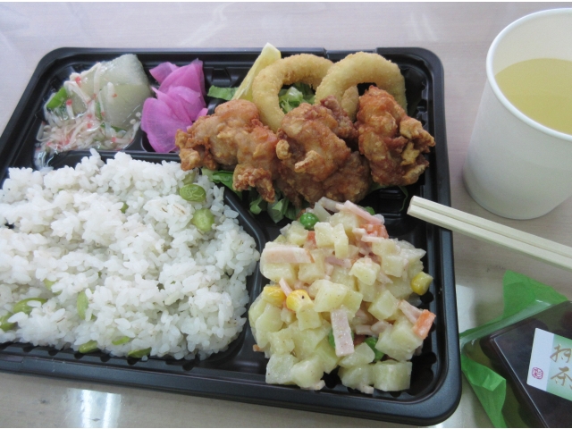 7月の誕生者は1名だけでしたので、ご本人様が「食べたい!!」とご希望された鶏の唐揚げをお弁当にしました。
