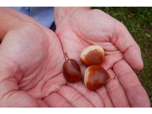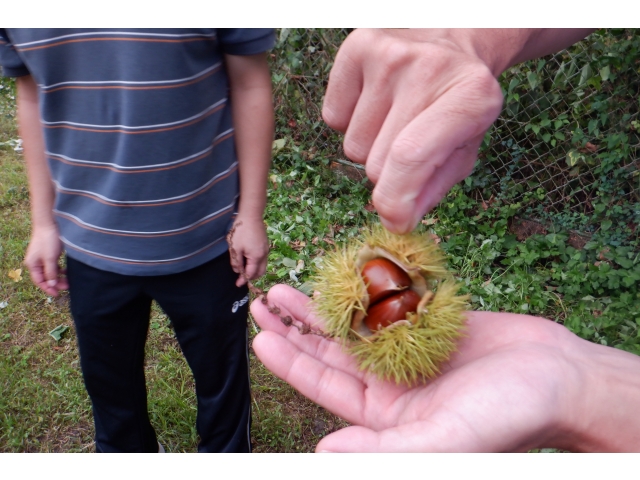 明知寮に栗の木がありまして、フライング気味ですが熟している栗を狙い撃ちです!