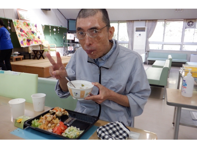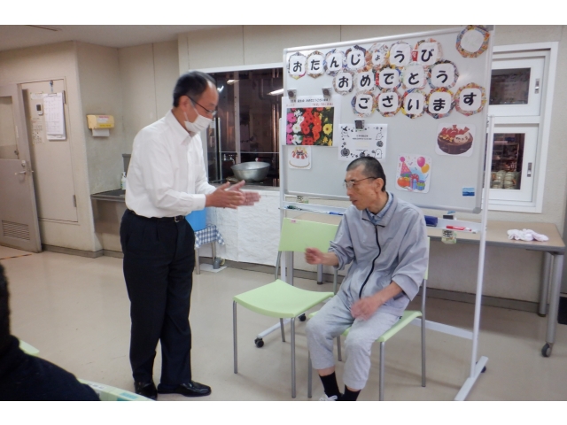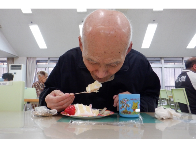 ハッピーバースデーの曲を歌いながら、利用者様、職員全員でお祝いしました!
