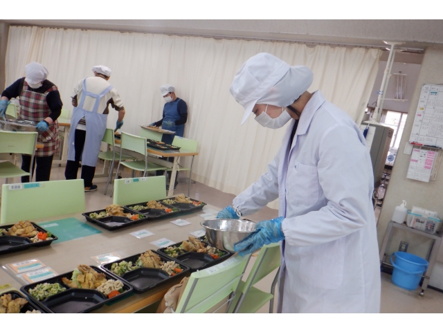 今回は、栄養士実習生にもお弁当詰めを手伝っていただきました。