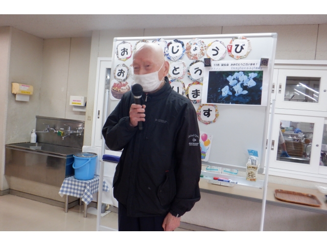 初めに寮長よりお祝いの挨拶、その後利用者様よりお礼の言葉がありました。