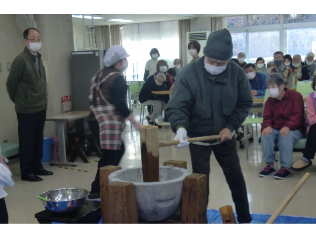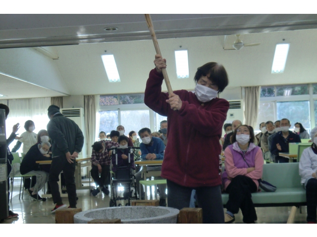 餅つき以外にも、餅作りや準備・片付けまで、利用者様と職員、共に一丸となって取り組んだ一日でした。