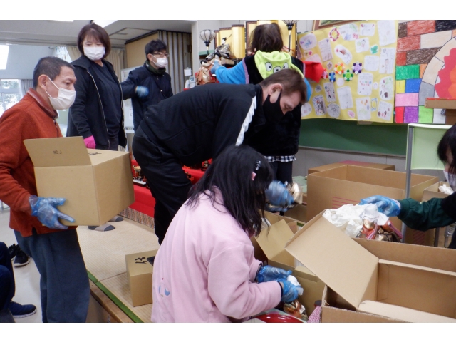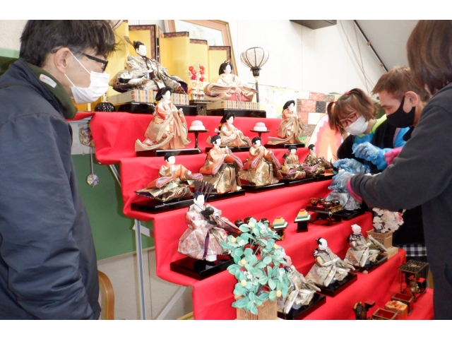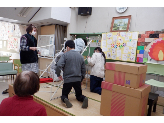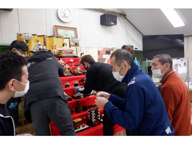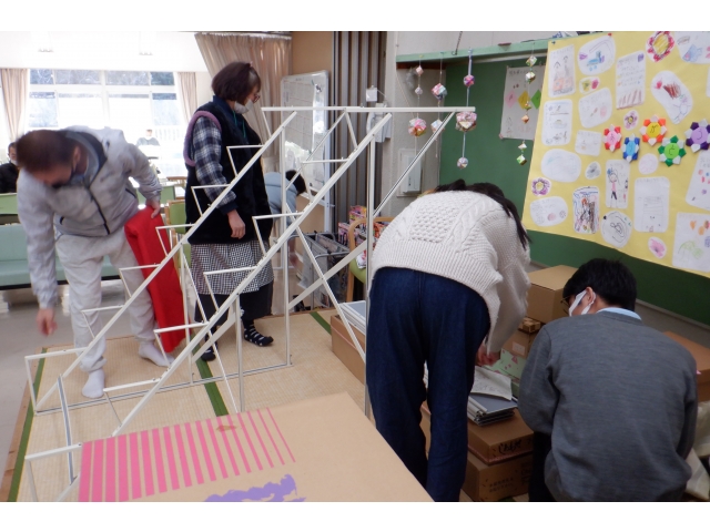 職員・利用者一丸となって、7段飾りを組み立てています。