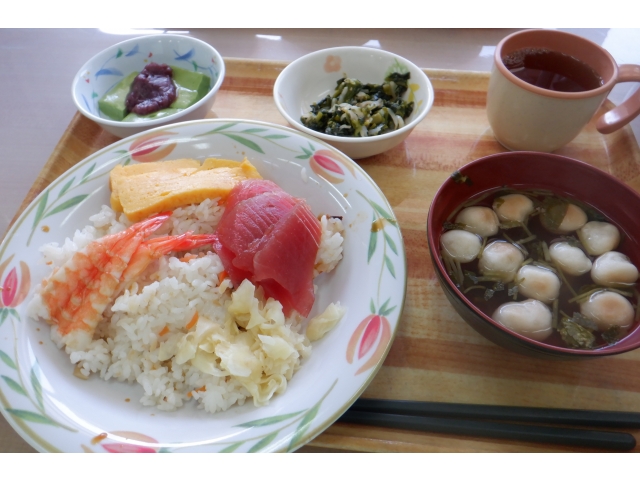 当日は昼食にちらし寿司、おやつにひなあられとチョコクレープを食べ、皆様満足された一日だったようです。