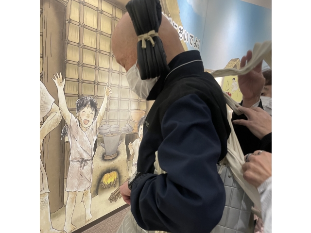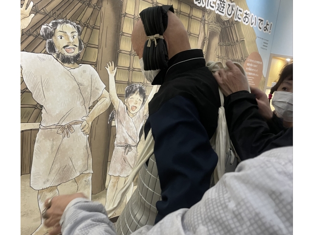 大和時代の文化に触れた利用者の皆様。感想を尋ねると、「思いのほか楽しかったわ!」、「生活の様子が見れてよかった」、「昔の人の恰好ができてよかった!」との事でした。