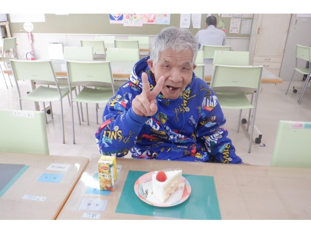 ハッピーバースデーの曲を歌いながら、利用者様、職員全員でお祝いしました!