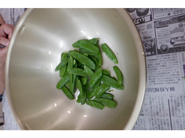 - さやえんどうの剝き方を学んでいます⭐