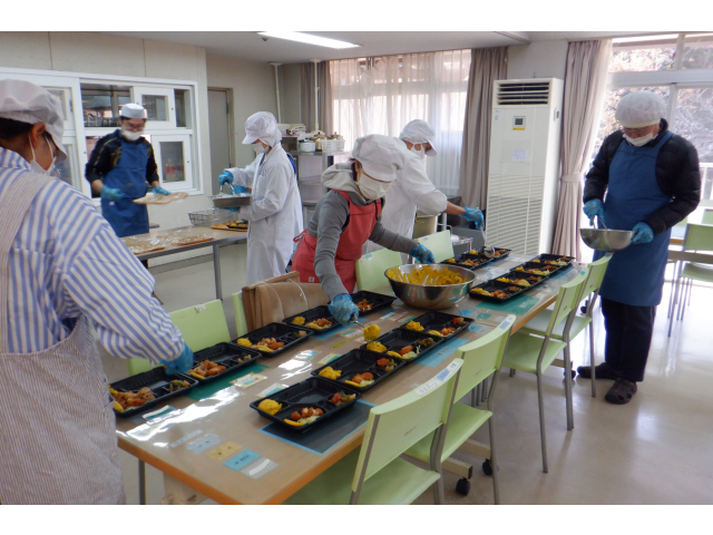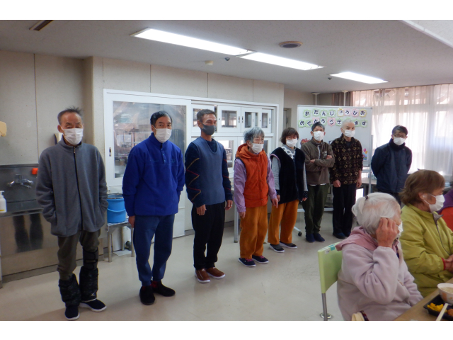 今月も厨房の方と明知寮職員に、栄養士実習生二人も加わって、一緒に心を込めて盛り付けしました!