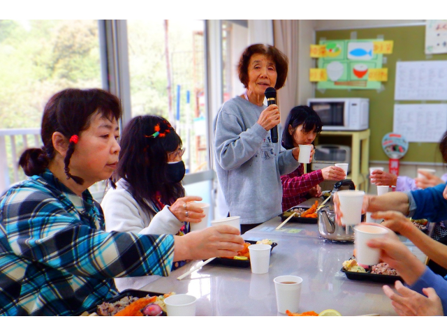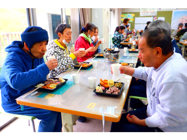お祝いの歌を歌った後は、自治会長の乾杯&会食です😋