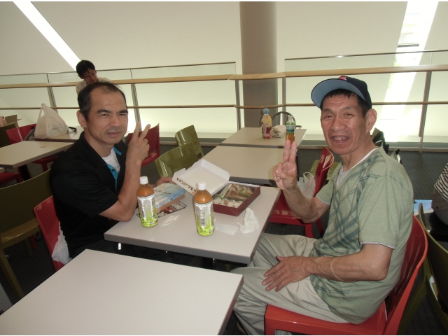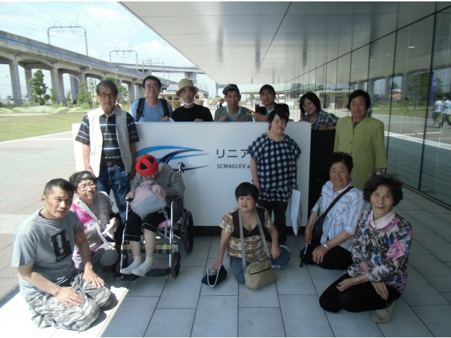 平成25年6月13日木曜日、台風がくるのでは……と言われていたのに晴天に恵まれ、名古屋のリニア鉄道館にでかけてきました。 ご家族の方にもお声をかけ、総勢17名でマイクロバスでのドライブです。 少し建物の中が薄暗かったので怖がってしまう人もいましたが、久しぶりに家族に甘えて皆さんの良い表情が随所に見受けられました。