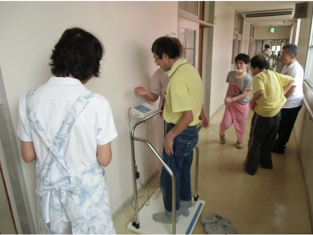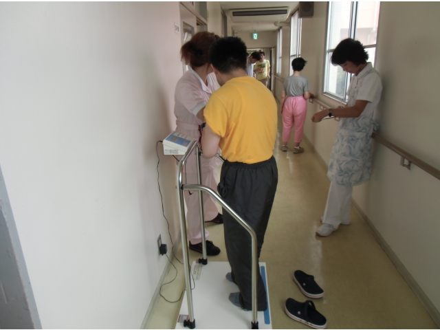 9月11日午前10時より看護師が中心となり、各棟で体重測定を行いました。体重の増えた方、減った方さまざまみえますが、結果を元に今後の健康管理に努めていきたいと思います。